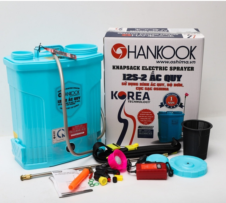 – Bình Xịt Điện Hankook 12L 12S dùng phun trừ sâu lúa, phun hoa màu, phun khử trùng, phun cây cảnh, hoặc dùng phun tưới cây.