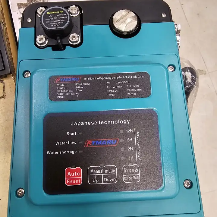 – Máy bơm tăng áp nóng lạnh Rymaru RY-200(A) có khả năng vừa bơm cấp nước vừa nơm tăng áp. Tiện dụng phù hợp sử dụng cho các thiết bị đầu ra như vòi sen, bình nóng lạnh. Bơm được chất lỏng đến 100°C. Máy thiết kế màn hình hiển thị thông số hoạt động bằng đèn LED ở mặt trước của máy. Cho bạn dễ dàng quan sát và thao tác điều chỉnh chức năng sử dụng máy tiện dụng, có chế độ hẹn giờ khởi động bơm.