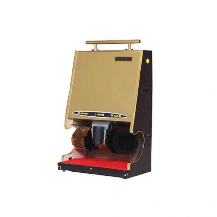 – Thân máy đánh giày tự động được làm bằng gỗ kết hợp với inox chống rỉ với gam màu vàng đẹp mắt.