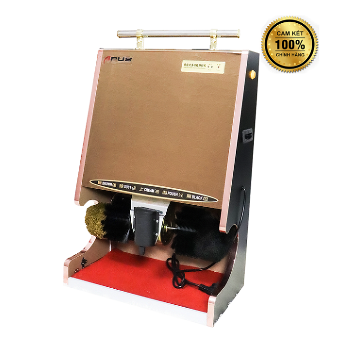 – Máy có thiết kế có tay cầm với 4 chổi đánh giày: 2 chổi đánh bóng, 2 chổi làm sạch