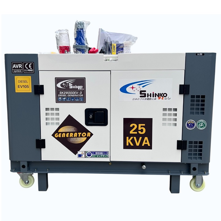 – Tổ máy phát điện Shinko SK28000EV-3 Là 1 trong những dòng máy tốt nhất chạy êm ái. Sự dụng động cơ 2 xilanh hình chữ V. Shinko là 1 trong những máy phát điện ít tốn nhiên liệu, đầu kéo điêu khỏe – tuổi thọ cao…… !